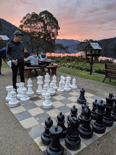 We headed to Tullah and found a pub. We played chess as the sun set over the mirror lake behind us. I reckon I only lost the game because I was distracted by the view...
